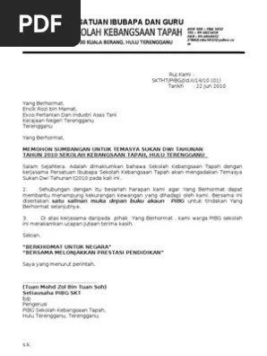 Surat mohon bantuan yb cute766 cute766 surat mohon sumbangan kewangan. Mohon sumbangan,mohon bantuan,sekolah sehubungan itu, saya mewakili ajk masjid kampung alit memohon jasa asa baik tuan sekir kirany anya dapat .